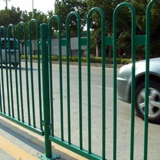 結(jié)構(gòu):市政交通護(hù)欄是由N個(gè)倒U形相互連接與兩端立柱和底部橫支撐連接組成,多用鑄鐵底座或預(yù)制澆注穩(wěn)固。